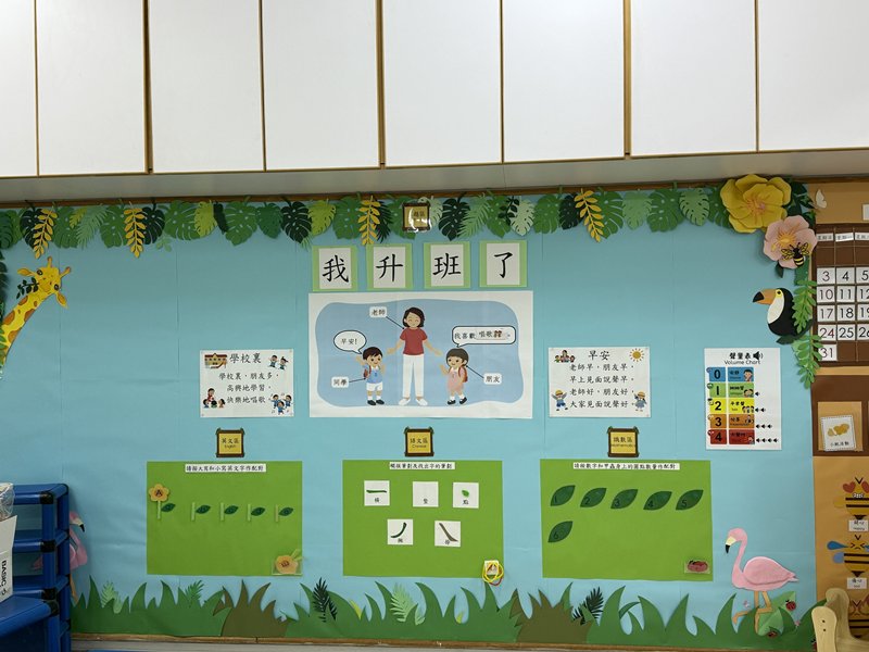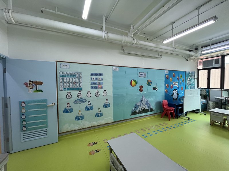 每個課室均以七大洲為主題,每個課室代表一洲,展示當地特色動植物、地標建築及文化展示,將學校環境設計成環遊世界的探索空間,讓幼兒探索世界多元面貌,培養地理知識與擴闊全球視野!課室更按幼兒不同的年齡層而佈置,使幼兒在愉快及富有啟發性的環境下學習、遊戲及成長。